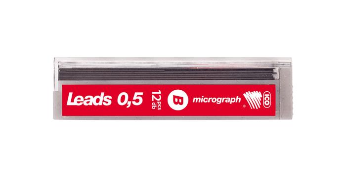 KezdőlapIrodaszerekÍrószerekÍrószer utántöltőkGrafitbél, B, 0,5 mm, ICO "Micrograph"